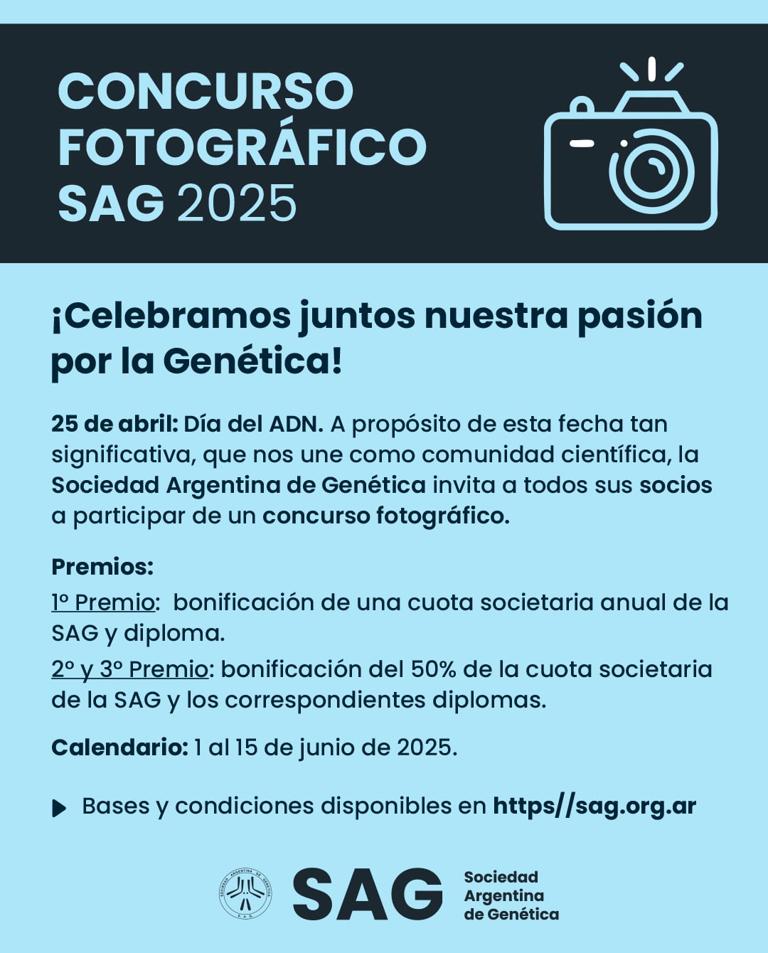 A propósito del Día del ADN instaurado el 25 de abril, y que por su significado reúne a todos los socios de la SOCIEDAD ARGENTINA DE GENÉTICA, se ha organizado un concurso fotográfico cuyas bases quedan disponibles a continuación.