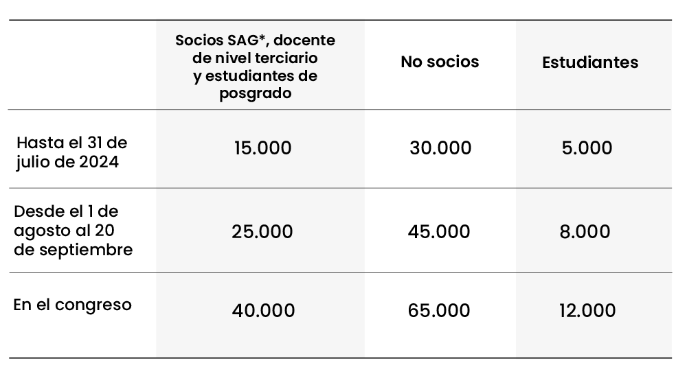 La inscripción incluye: participación en todas las actividades científicas del evento, envío de un solo resumen de Comunicaciones Libres por inscripto.