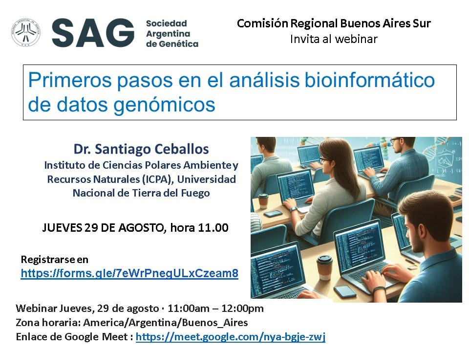 Nos complace anunciar que la Comisión Regional Buenos Aires Sur invita al webinar “Primeros pasos en el análisis bioinformático de datos genómicos”. El mismo tendrá lugar el 29 de agosto a las 11 hs.