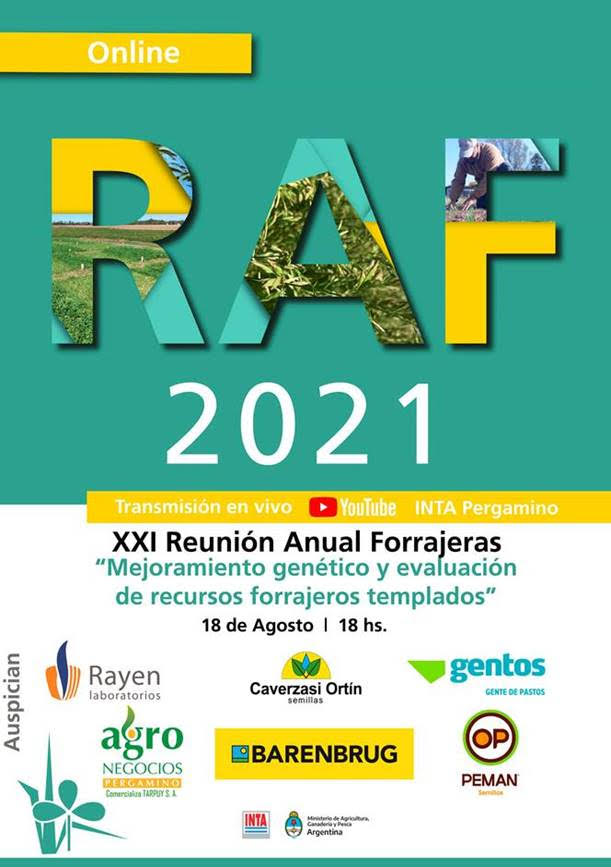 XXI REUNIÓN ANUAL FORRAJERAS El Grupo Forrajeras del INTA Pergamino invita a todos los interesados a participar de la jornada anual el 18 de agosto a partir de las 18hs. Consistirá en coloquios virtuales sobre adelantos en mejoramiento. Más información
