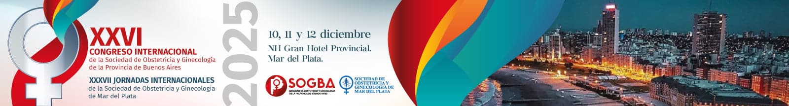 Les recordamos que el XXVI Congreso Internacional de Ginecología y Obstetricia SOGBA y las XXXVII Jornadas Internacionales, se realizarán los días 10, 11 y 12 de diciembre de 2025 en el NH Gran Hotel Provincial de la ciudad de Mar del Plata.
